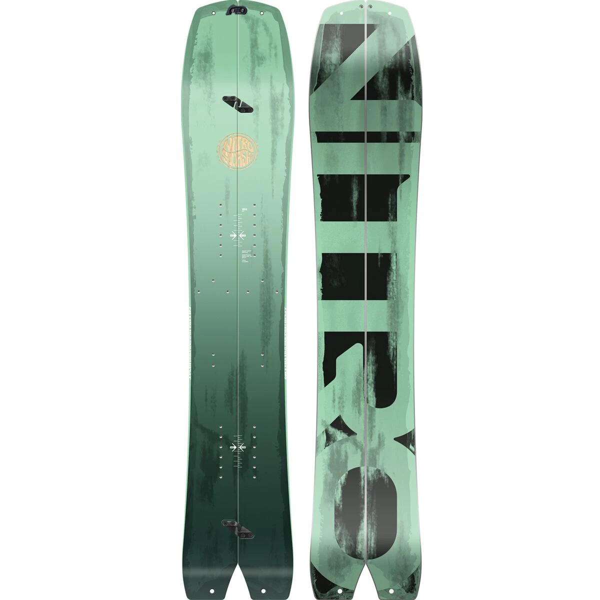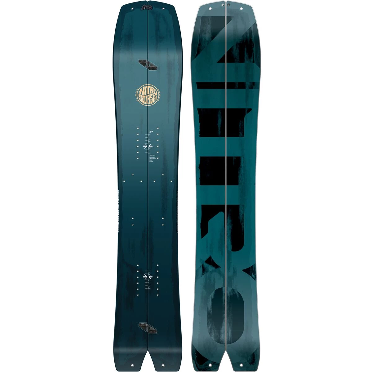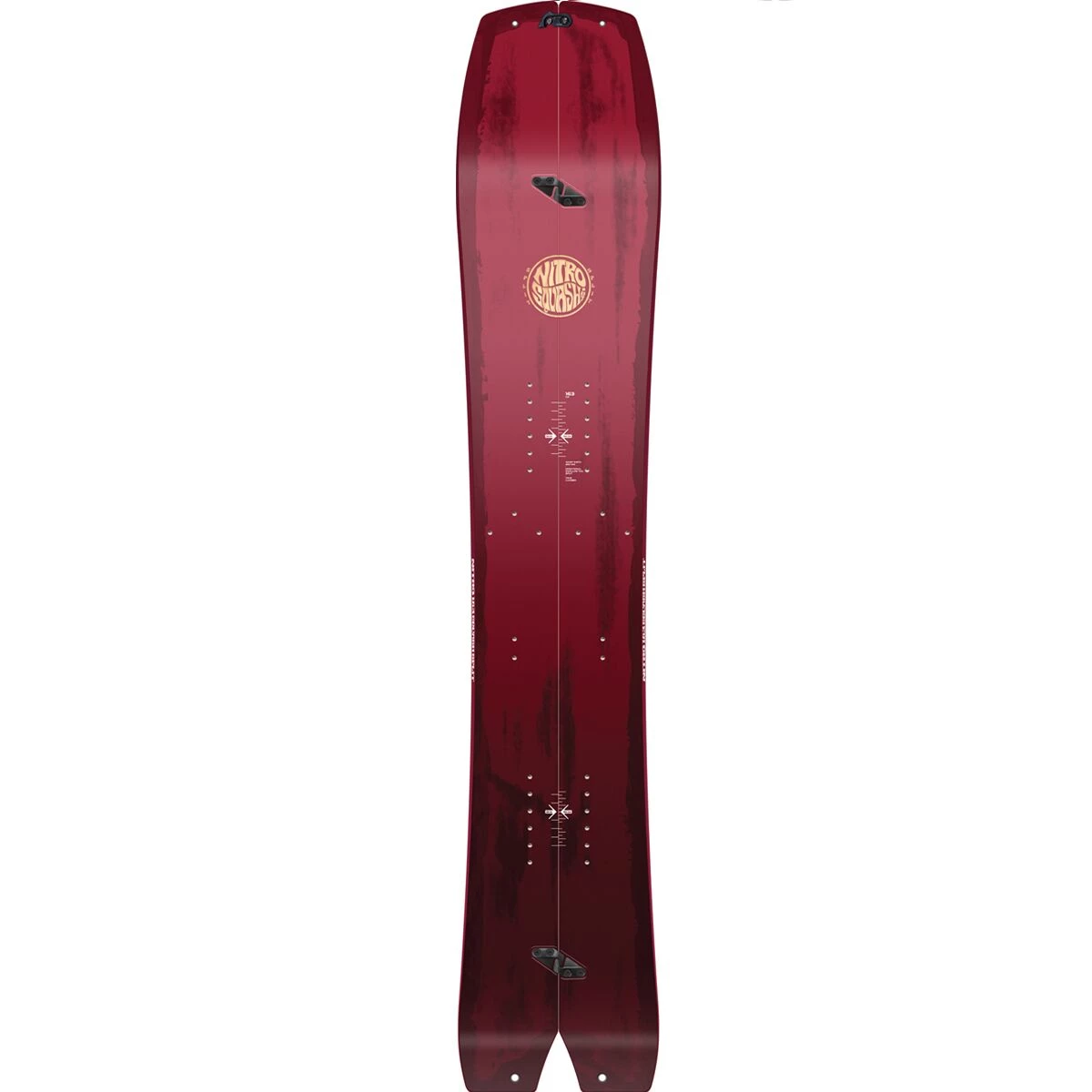 - Shape: directional swallowtail splitboard, progressive sidecut