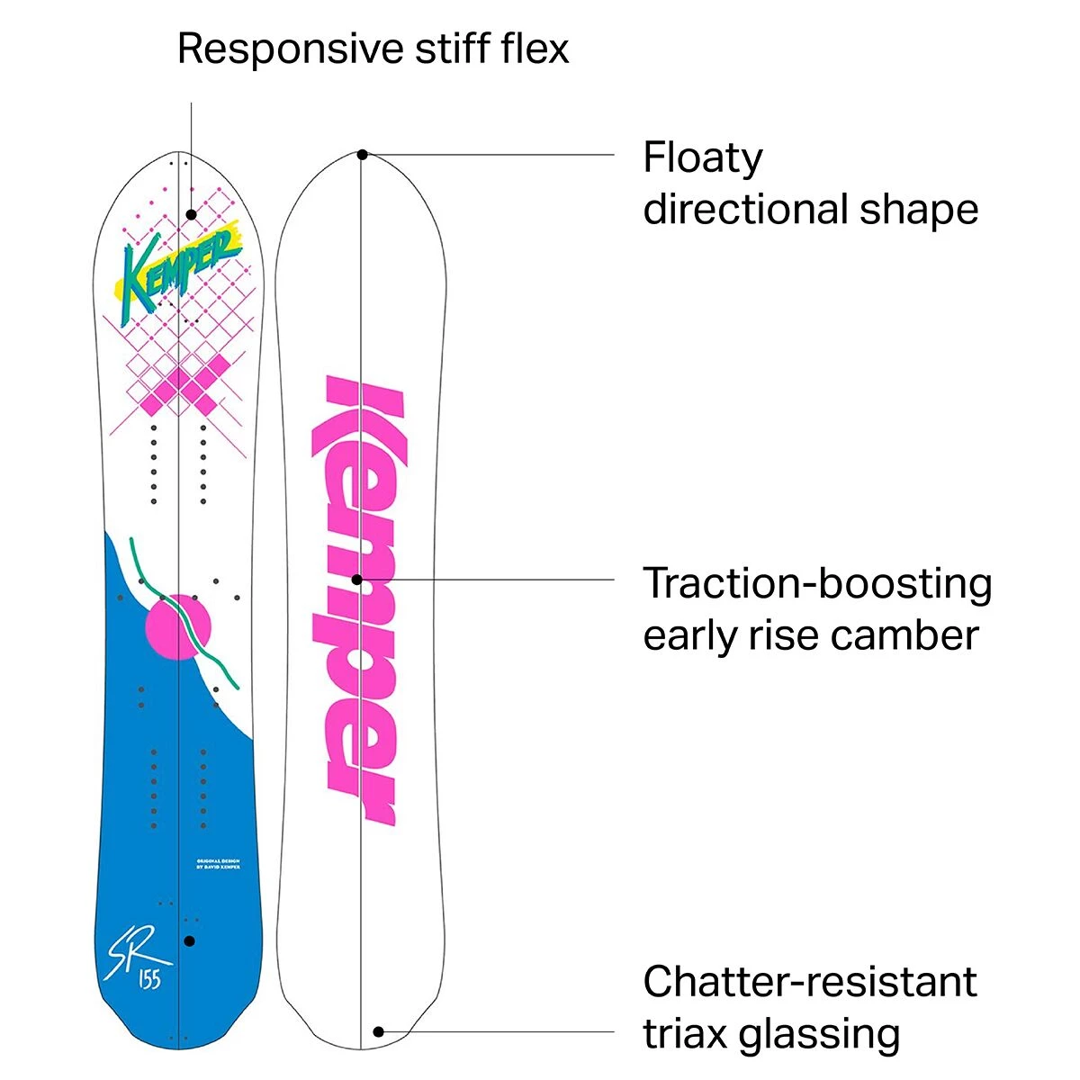 We describe our best days in the backcountry as “pitted”, “gnarly”, “tubular”, and we do that while riding Kemper’s SR 80’s Edition Splitboard. The Surf Rider (SR) stays true to the roots of snowboarding, helping us ride fresh pow like it’s Californian surf. An early rise, directional camber profile helps us keep traction while we motor through long climbs deep into snowy hills.
