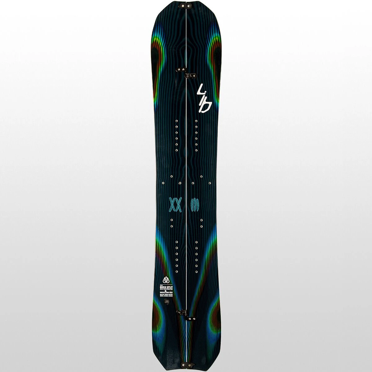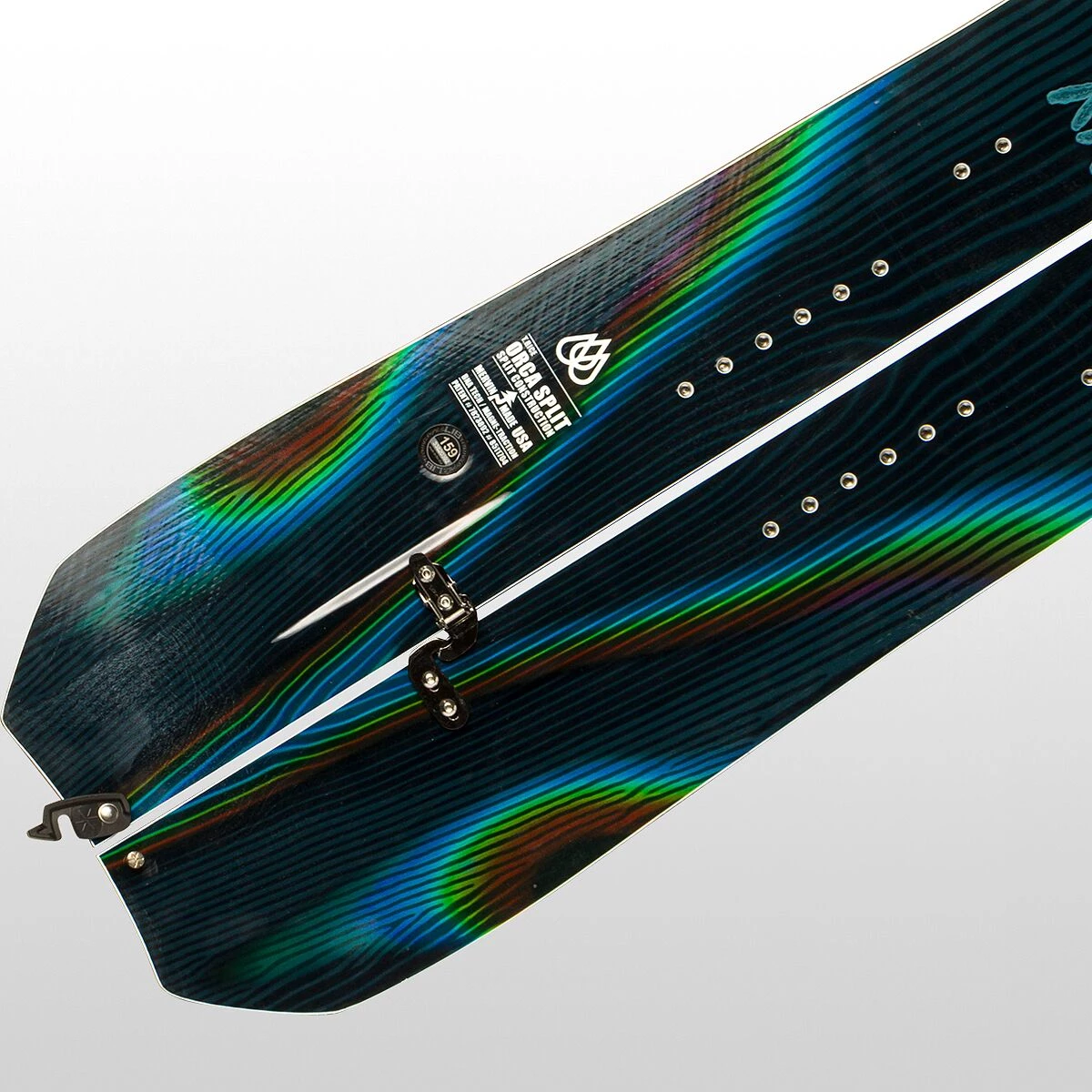 The ultimate surfing machine from Lib Tech’s catalog has been sliced in two, creating a splitboard worthy of the freshest backcountry stashes. Modeled exactly after Lib Tech’s Orca, this powder-blasting splitboard is ready to surf through beautiful, untouched pow for as long as our legs can handle it. Its contact-maximizing whale tail technology maneuvers through tricky terrain and imperfect conditions. When this fish is filleted, its ultralight construction and integrated inserts make skinning feel like less of a chore and more of a reward. Once we’ve found the perfect line, the included Karakoram clips provide us with an unyielding connection to keep us confident and focused on the dreamy ride ahead.
