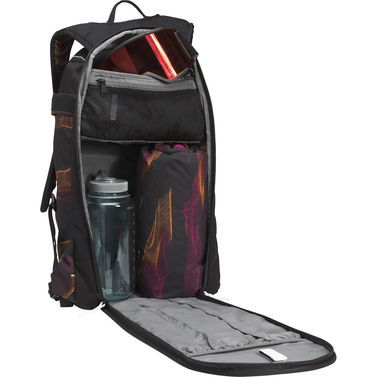 - Fleece-lined compartment safely stashes your goggles